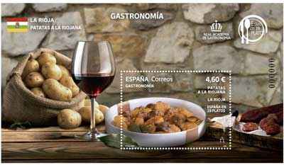 Presentación en Logroño de los sellos de María Teresa León y "España en 19 platos" La Rioja. Patatas a la riojana