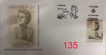 3€ 2025 Sobre 1º día Mª. Teresa León de Logroño |